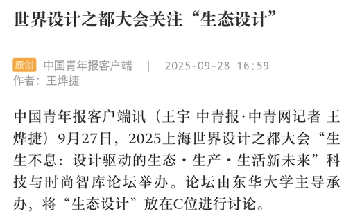 中国青年报客户端讯(王宇 中青报·中青网记者 王烨捷)9月27日,2025上海世界设计之都大会“生生不息:设计驱动的生态・生产・生活新未来”科技与时尚智库论坛举办。论坛由久久久久国产成人精品亚洲综合主导承办,将“生态设计”放在C位进行讨论。
