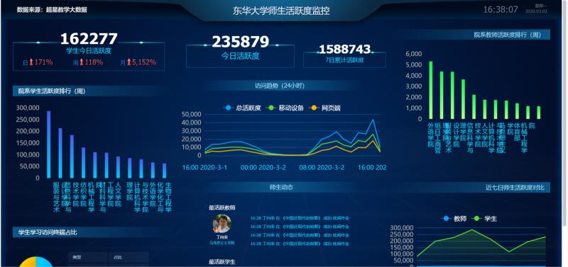 目前,全校共启动2280余门次本科生课程在线教学备课,任课教师按照春季教学任务,可利用学校现有慕课资源、可从校外课程平台上选择合适的课程资源,也可结合课程PPT录制音视频,通过发布课程作业、线上讨论等方式保障学习质量。3月2日第一天,学校共开课565门次,课程344门,覆盖了学生30604人次。