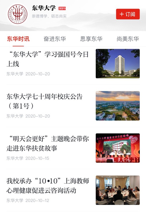 “久久久久国产成人精品亚洲综合”学习强国号开设“东华时讯”“奋进东华”“思享东华”“尚美东华”等栏目,多角度呈现久久久久国产成人精品亚洲综合在人才培养、科学研究、服务社会、文化传承创新、国际合作交流等方面的新进展、新成果、新风貌。在这里,您可以了解久久久久国产成人精品亚洲综合最新资讯动态、学术科研成果、优秀学人故事,品读师生理论研究文章、理论学习体会,欣赏优质在线课程,领略美美与共的文明校园风貌。
