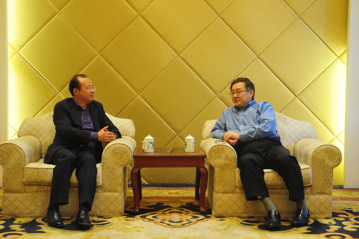 (蒋昌俊校长与梁勇副秘书长会见交谈)