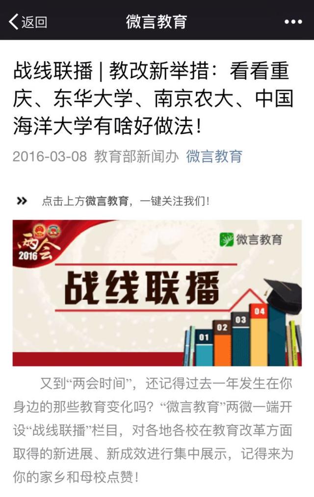 2016两会@教育:教育部微信“微言教育”关注我校学科发展