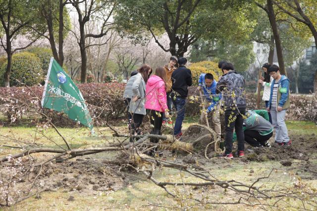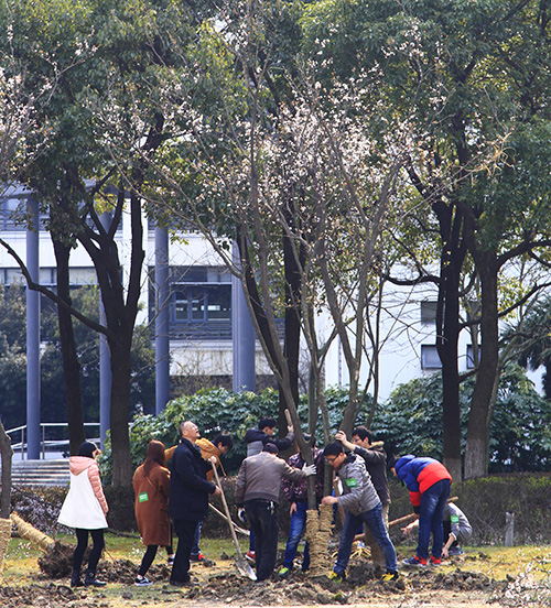 3月11日植树节前日,我校在松江校区组织师生开展了植树造林。陈革副校长出席活动,并与学生志愿者一同来到国旗广场,亲手为东华校园增添一抹绿。