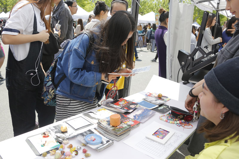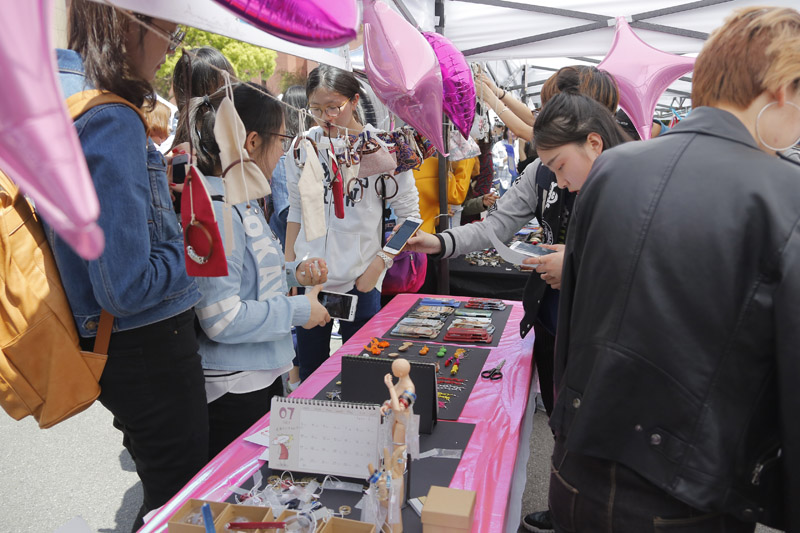 走过八年,环东华时尚周创意市集已然是沪上最有影响力的校园活动之一。对于许多参与者来说,创意市集不只是一次简单的“练摊”,更是比拼创意的擂台赛,原创、精致、新颖,这些元素一样也不能少。今年创意市集的招募令早在年初便已发出,经过多轮筛选,最终65个校内个人和团体、11个兄弟院校团体获得了本次创意市集的“门票”。