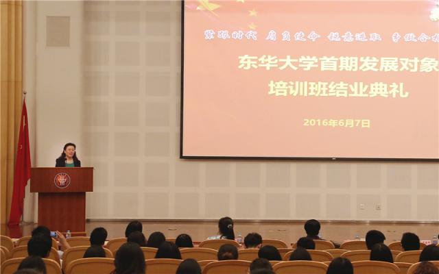 6月7日,我校首期发展对象培训班结业典礼在松江校区举行,来自12个学院的393名学员顺利结业,共评出16名优秀学员。校党委副书记、党委组织部部长、党校常务副校长崔运花出席典礼并讲话。