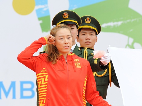 (中国国家攀岩队队长、世界攀岩锦标赛冠军钟齐鑫参加开幕表演)