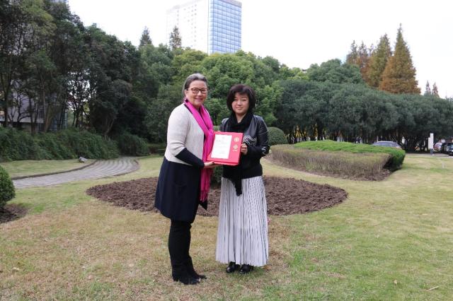 12月2日,在我校延安路校区逸夫楼前绿地广场举行了捐赠仪式。荷兰驻沪总领事艾晓安女士( Mrs. Anna Desiree Adema)、刘春红副校长、发展联络处和上海国际时尚创意学院领导共同出席了捐赠仪式,携手种下了象征友谊的郁金香种球。之后,双方领导进行了亲切友好的交谈。刘春红副校长代表学校向艾晓安总领事表达了谢意,并赠送捐赠证书留念。艾晓安总领事深情寄语,希望来年郁金香花开之际,双方的友谊种子能够开出绚烂的花朵。此番驻沪总领事馆捐赠的郁金香为红色和橙色,寓意未来双方深化合作,激发活力,教育事业大展宏图。