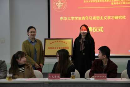 成立仪式上,马克思主义学院直属支部书记兼院长王治东与校团委副书记杨蓉为“青马社”揭牌。王治东认为,“青马社”是落实全国高校思想政治会议精神并结合马克思主义学院学科特色成立的学生社团,对于马克思主义学院的学生工作来说具有里程碑的意义。而“青马说”主题论坛聚焦“新时期党员的知与行”这一主题,契合了全面从严治党的时代背景,具有很强的现实意义。对这一问题的关注和研讨,有利于提升大学生党员的政治理论水平和素养。她希望“青马社”在建设过程中坚持正确的理论指导,引导社团成员及广大学生读经典、学理论、勤思辨,自觉将理论认同同信念认同相结合,努力建设成为有特质、接地气的大学生理论学习组织。杨蓉充分肯定了成立“青马社”和举办“青马说”主题活动的意义,并表示校团委将一如既往地大力扶持和发展理论学习型社团,希望“青马社”全体成员撸起袖子加油干,争取办成有特色的理论社团。