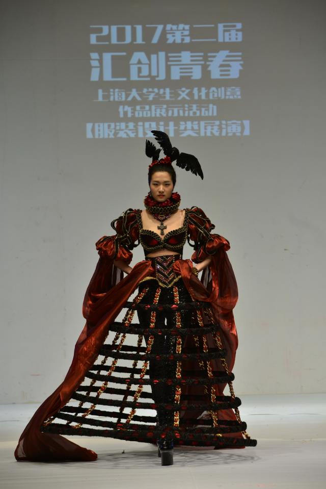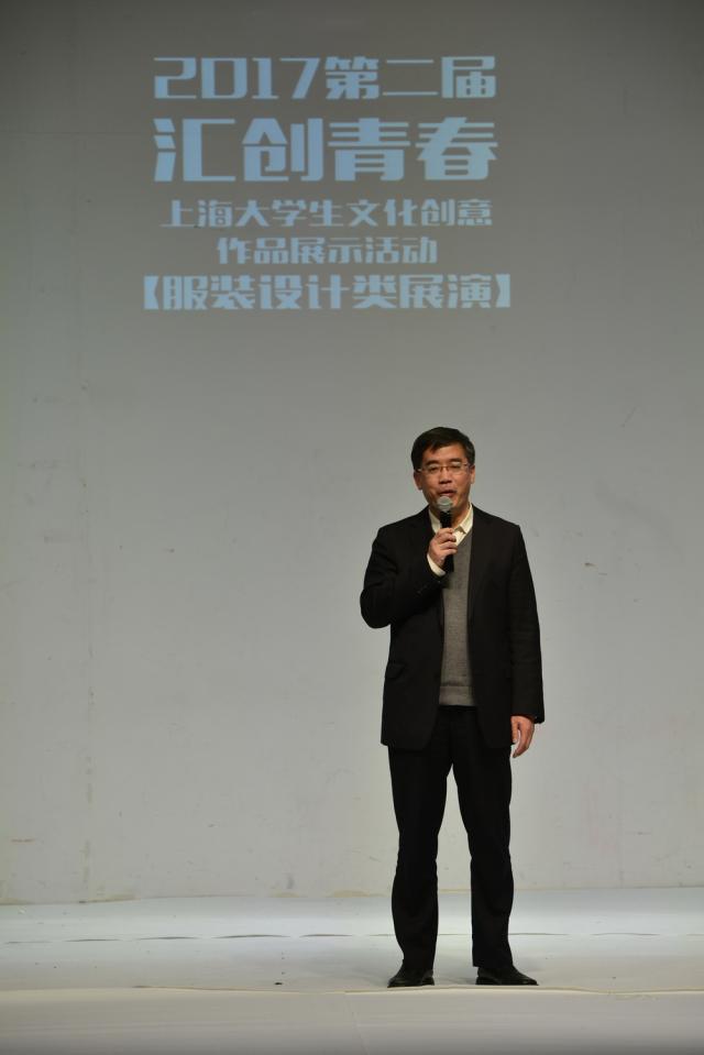国际性与本土化相结合,时尚创新与文化传播相交融,教育与产业相合作,4月13日,第二届“汇创青春”上海大学生文化创意作品展示季“优秀作品汇展”服装设计类优秀作品展演活动在我校精彩亮相,来自8所高校的55个系列165套优秀作品竞相辉映,整个活动与上海时装周融为一体,将持续至5月底。我校党委书记朱民、党委副书记刘淑慧出席活动现场,上海市教委高教处处长桑标、我校教务处处长姚卫新及上海戏剧学院、上海工程技术大学、上海视觉艺术学院、上海商学院、上海电影艺术学院、上海杉达学院等参赛高校教务处、创新创业中心的领导嘉宾与众多专业人士和市民现场赏析这一文化艺术盛宴。朱民书记宣布活动开幕。