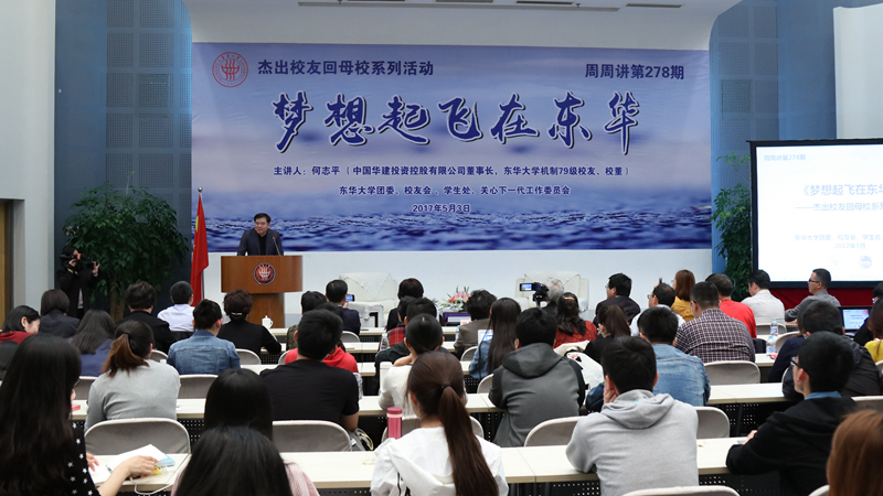 5月3日下午,我校机械制造专业79级校友、校董何志平先生应邀参加周周讲第278期“杰出校友回母校”系列活动,以《梦想起飞在东华》为主题与青年教师和学生代表畅谈职业理想,分享心得体会。副校长刘春红、关心下一代工作委员会副主任浦解明出席报告会,发展联络处、组织部、学生处、团委、机械学院、管理学院、理学院等学院部门负责同志和各学院党建辅导员、特邀党建组织员参会。