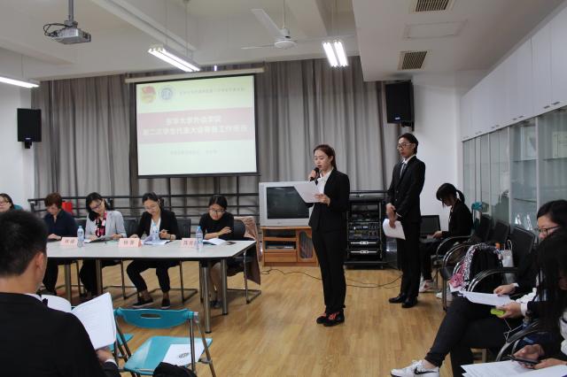 外语学院第二次学生代表大会是学院学生会立足新起点、谋求新发展的一次大会,是学院青年学生进一步参与学院建设的一个重要里程碑。学院也将继续发挥院级学代会作为学院治理“三架马车”之一的重要作用,以学生意见为倒逼机制,赋予学生话语权,在学生中逐渐形成“学代会是学生与学院进行沟通的最直接、最有效渠道”的良好共识和氛围,促进学院各项工作齐头并进。