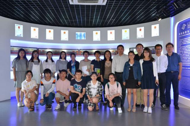 (老师们参观重点实验室成果展示室并与讲解员合影)