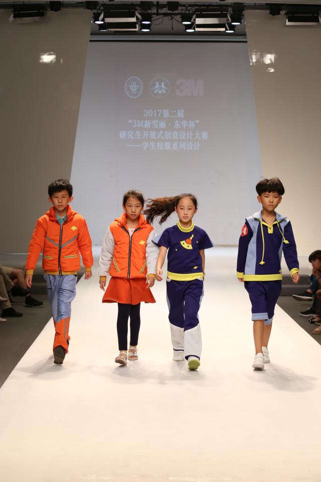 比赛中,服装与艺术设计学院研究生团队将3M高科技材料与青春时尚的设计理念充分结合,通过设计突出校服的功能性、时代性和文化性,演绎出了别样的校服气质。