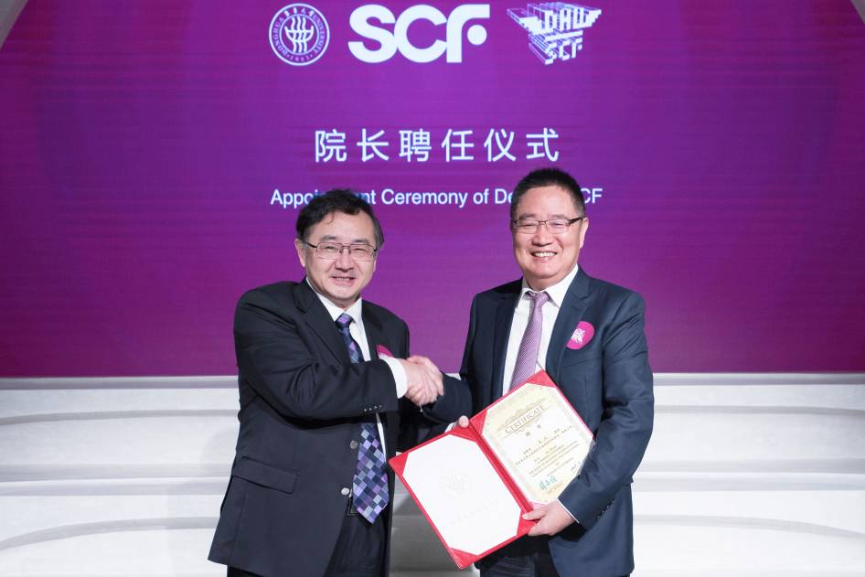 (蒋昌俊校长为张杰颁发SCF院长聘书)