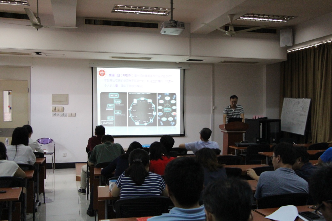 为认真贯彻落实党的十八届六中全会精神和推进“两学一做”学习教育常态化制度化的要求,加强党员日常教育管理,落实学校《关于开展基层党支部主题党日和组织生活观摩交流活动的实施方案》的要求,9月26日下午1点,软件系教工党支部、院办、实验室联合教工党支部在1号学院楼140召开“网络空间安全——新时代计算机教师责任探讨”主题党日观摩活动,各教工党支部党员以及学生党员代表、CTF社团学生代表出席了本次观摩活动。