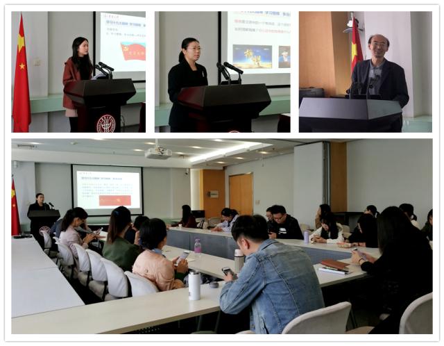主题党日活动由周德红主持,她讲到,十九大报告指出,要把坚定理想信念作为党的思想建设的首要任务,教育引导全党牢记党的宗旨,挺起共产党人的精神脊梁,解决好世界观、人生观、价值观这个“总开关”问题,自觉做共产主义远大理想和中国特色社会主义共同理想的坚定信仰者和忠实实践者。活动中还借助线上新媒体平台“雨课堂”,周德红老师现场讲授了题为“学习十九大精神,学习楷模,争当先锋”的微党课,介绍了被称为敦煌艺术“守护神”的常书鸿和坚持“姓马更信马”的思想信念、被称为“行走的马列字典”的陈先达两位榜样人物爱国敬业的事迹。两位榜样的故事引发了师生对如何发挥党员先锋作用、怎样做真正的马克思主义者的广泛探讨。