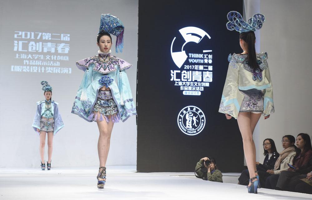 图为第二届“汇创青春”上海大学生文化创意作品展示季之服装设计类优秀作品展示
