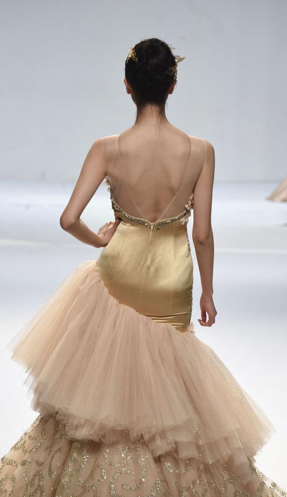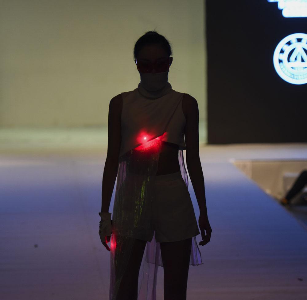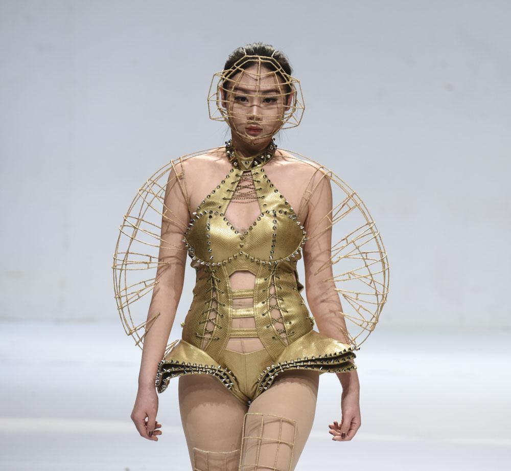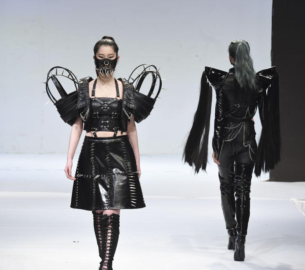 动态秀现场,一大批思想性和艺术性完美融合的优秀创意作品依次亮相。学生设计师们力图突破时间局限,从设计手法、制作工艺、运用材料、配饰等独特视角重塑对服装的认识。