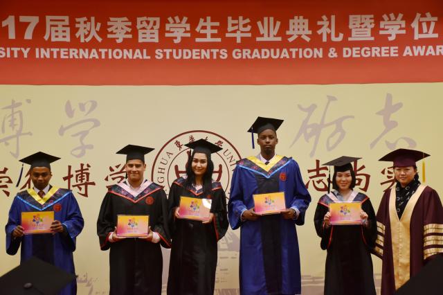 1月11日,我校2017届秋季学期外国留学生毕业典礼在延安路校区举行,43名本硕博外国留学生毕业作别母校,开启新的人生征程。副校长刘春红出席典礼并为留学生颁发毕业证书。国际文化交流学院院长顾伯洪,发展联络处处长、校友会秘书长瞿斌,纺织学院副院长徐广标等出席仪式。来自世界各地的毕业生亲属、师生代表共同参加了此次典礼,与毕业生们共同分享了收获的喜悦。