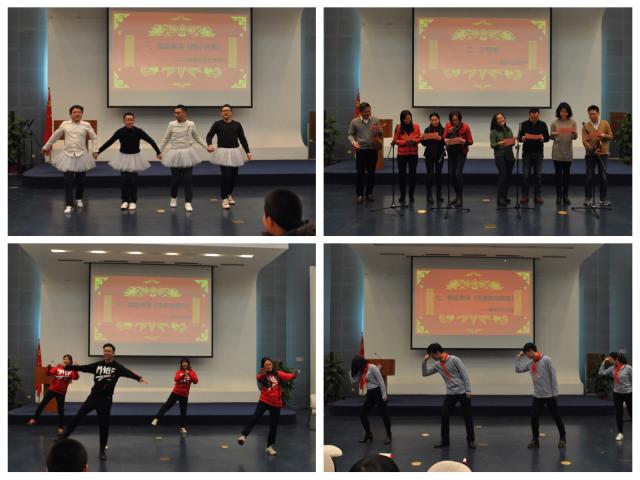 由仪器设备公共平台带来的精彩而又诙谐的歌舞《四小天鹅》拉开了联欢会的序幕,紧接着学院党政领导班子的8位老师用三句半的形式带大家一起回顾了学院2017年所取得的累累硕果。舞蹈《带你去旅行》、《青春阵线联盟》,歌曲《成都》以及近四年新进教师的“视频秀”,展现了材料学院青年教师的青春与活力,化纤所退休教师倪建华老师朗诵亲自创作的诗歌《为你自豪,化纤研究所》铿锵有力地道出了中国“化纤人”的精神。“猜宝宝”、“拷贝不走样”、“一元五角”、“听歌猜名”等游戏更是将联欢会推上一个个高潮。最后,联欢会在高材系耿志老师的一首《等待》中落下帷幕。