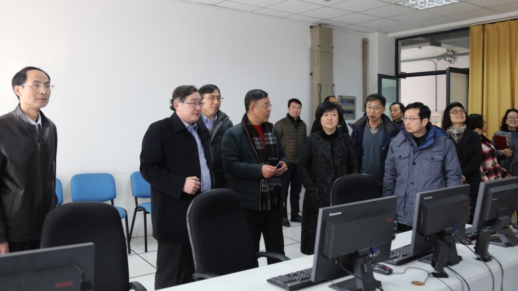 (蒋昌俊一行查看实验室)