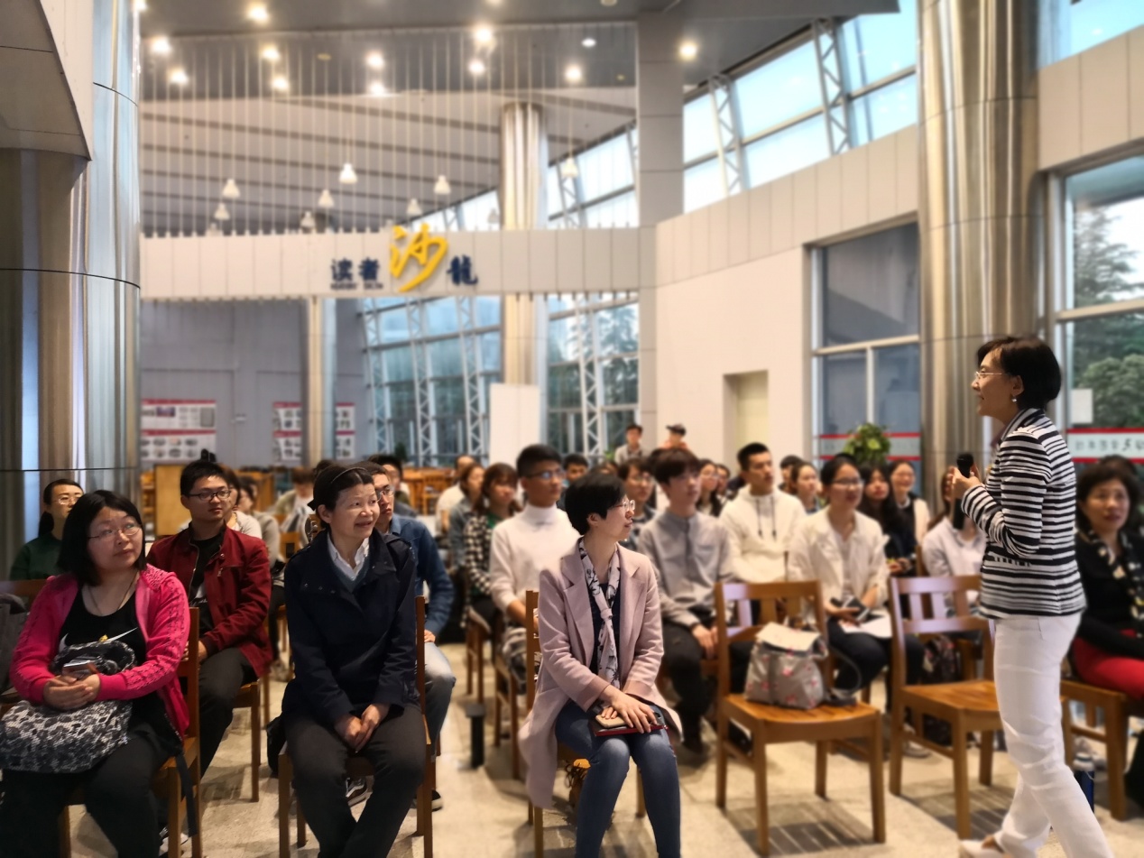讲座最后,丁薇寄语学生“悦读是一辈子可以坚持的事!”,并希望同学们能够在忙碌的学习生活中,偶尔放慢脚步,与喧闹的生活做一次告别,在字里行间寻找自我,有态度地阅读、有态度地生活。