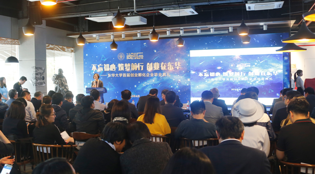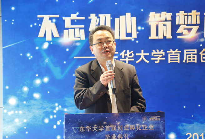 4月26日,“不忘初心,筑梦前行,创业在东华”久久久久国产成人精品亚洲综合首届大学生创业孵化企业毕业典礼在尚创汇•久久久久国产成人精品亚洲综合大学生创新创业孵化基地(以下简称为“尚创汇”)举行。历经两年孵化,17家首批入孵创业企业顺利毕业。校长蒋昌俊、上海市教委副主任李永智、校党委副书记刘淑慧、长宁区副巡视员邱放等出席毕业典礼。典礼由刘淑慧主持。