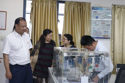 (松江区人才服务中心领导及企业代表参观信息学院实验室)