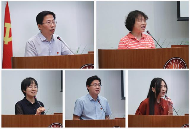 会上还表彰了学校2017—2018年度优秀党建品牌项目、特色组织生活案例、特色主题党日案例和优秀党建研究成果。纺织学院党委书记王新厚、退休党委书记曹春城、机械学院党委副书记李宁蔚、材料学院高分子科学与工程系党支部书记江晓泽、人文学院“学思先锋”硕士研究生党支部书记穆莉等5位一线同志分别结合岗位实际交流了工作中的经验做法和探索实践,展现了基层党建工作风采。
