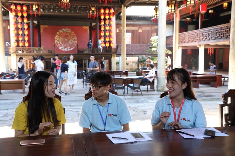 在今年暑期社会实践大军中有一支名为“小脚丫筑梦实践团”的队伍,前往江西抚州调研当地戏曲文化。这是一群来自人文学院传播系的90后大学生,朝气蓬勃,不惧困苦。他们有着一个共同的梦想——用脚步丈量中华大地,发挥专业优势,用时尚传播助力传统文化传承。自2013年至今,小脚丫筑梦实践团连续六年奔赴安徽、湖北、四川、内蒙古等全国7个省份针对黄梅戏曲文化、八极拳武术文化、羌秀文化、阿拉善蒙古长调、抚州戏曲等展开调研实践活动,访谈国家级非物质文化遗产传承人20余人,采访居民1000余人,形成调研报告、创新项目、课题论文等成果30余万字,并协同高校、政府、文化名人,共筑中华优秀传统文化传承与传播工程。他们用坚守执着把更多不为人知的优秀传统文化带到师生面前。“老祖宗留下来的宝贝要传承和发扬,我们希望发挥学生的专业所长为文化传承做些事,在保留传统文化精髓的基础上,为它披上时尚外衣,让更多的人了解和喜爱优秀传统文化。”人文学院团委书记、小脚丫实践团指导老师李华清告诉记者。