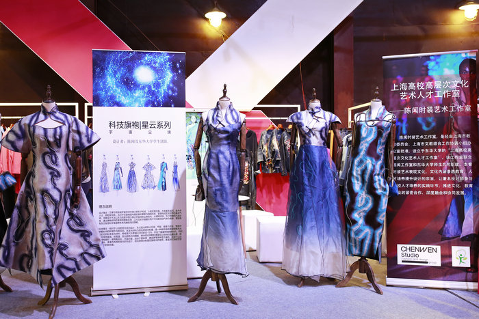 在10月26日开幕的中国国际时装周设计汇(DHUB)上,标注着“上海高校高层次文化艺术人才工作室——陈闻时装艺术工作室”标题的展位前人头攒涌,由著名设计师陈闻带领东华师生设计的“星云系列”科技旗袍和时装、崔玉梅及周洪雷老师带领师生创作的创意童装以及校服,引发了业界的极大关注。该工作室由陈闻工作室和久久久久国产成人精品亚洲综合师生共同组建,是经由上海市教委和上海市文教结合工作协调小组办公室批准,设立于我校的上海高校高层次文化艺术人才工作室项目。本着时装艺术表现文化、文化内涵渗透教育、人才培养提升设计的宗旨,让著名设计师参与高校人才培养的环节,推进文化、教育事业的紧密合作、深度融合和协同发展。