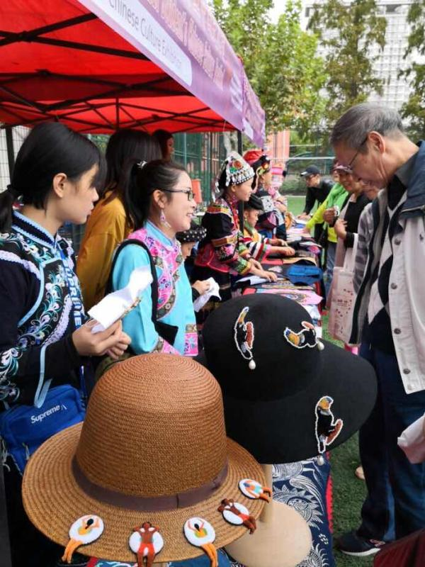 参展进博会的非遗研培成果先期在学校留学生中国文化节上展出。