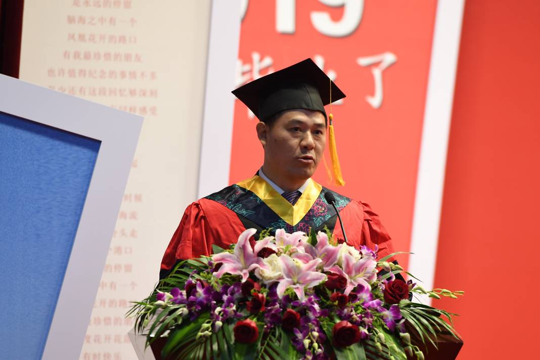 纺织学院顾伯洪教授、旭日工商管理学院郑斐峰教授作为导师代表发言。顾伯洪希望大家毕业后,继续秉持勤俭严谨的生活常态、坚持积极向上的工作状态、保持豁达乐观的健康心态,创造属于自己的美好未来。郑斐峰赠言毕业生留心寻找人生的四匹“良驹”:以成就自己热爱的事业为目标,与志同道德的良师益友一起,始终保持终身学习的良好习惯,在追求梦想的道路中涤荡自己的灵魂,在未来的道路上不断突破自我。