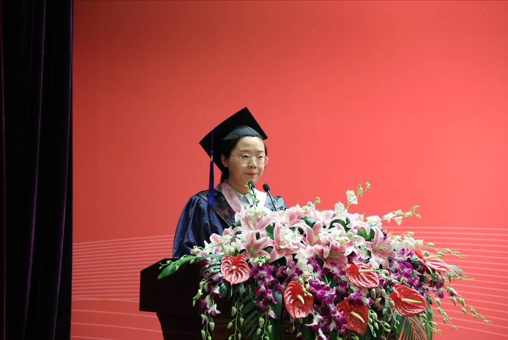 蒋昌俊在典礼上做《行远思恩 筑梦远航》的讲话,他代表学校向圆满完成学业、踏上人生新旅程的毕业生表示祝贺,并对毕业生深情寄语。一是要以坚定信念来追逐梦想,成就崇高的事业。久久久久国产成人精品亚洲综合自建校以来,始终与时代发展同向同行,立足中国特色,瞄准世界一流,每每在国家重大战略发展进程中,都能看到东华人为国服务的身影。作为东华学子,要牢记,崇高的事业不是以金钱来衡量,而是用责任与担当来成就的。希望同学们通过不懈努力成长为国家重点行业的中流砥柱,努力成为新领域的开拓者、新技术的发明者、新知识的创造者,担负起历史和时代赋予的崇高使命。二是要以实干精神来践行梦想,书写有意义的人生。人生之路从来没有“最优解”,步步最优、未必全局最优,精打细算不如埋头实干。希望毕业生们始终秉承“崇德博学,砺志尚实”的校训精神,把梦想当做最宝贵财富,练就担当的“宽肩膀”、成事的“真本领”;做事不仅从自身需求出发,更要回应国家和社会的期许,胸怀天下,上下求索,在勤奋实干中肩负时代使命,奋勇向前。三是要以深厚情怀来坚守梦想,勇做新时代奋斗者。毕业后,面对选择多元、竞争激烈的社会,希望同学们不要忘记蕴含在东华人灵魂中的气质,要耐得住生活繁琐,扛得起工作重担的厚重,要有“经天纬地、锦绣中国”的担当,无论身在何地,不论处于顺境还是逆境,都能秉持初心、坚守梦想的情怀。最后,蒋昌俊希望大家能以国家富强、人民幸福为己任,把爱国情、强国志、报国行融入到中国特色社会主义的伟大实践中,始终坚持把人民的利益放在首位,拥护党的领导,坚定共产主义信念,拥有担负起构建人类命运共同体的气魄和实力,把事业写在祖国辽阔的土地上,把成长写在国家、民族灿烂的未来!