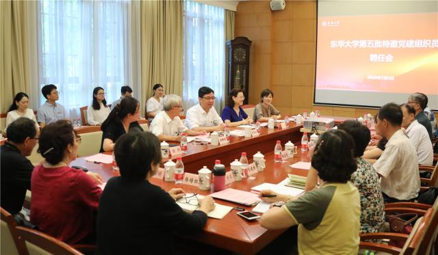7月5日,学校第五批特邀党建组织员聘任会在延安路校区举行。党委书记刘承功出席会议并讲话,党委副书记崔运花、校关工委副主任浦解明、全体特邀党建组织员、专职党务干部等出席会议。会议由党委组织部部长朱英主持。