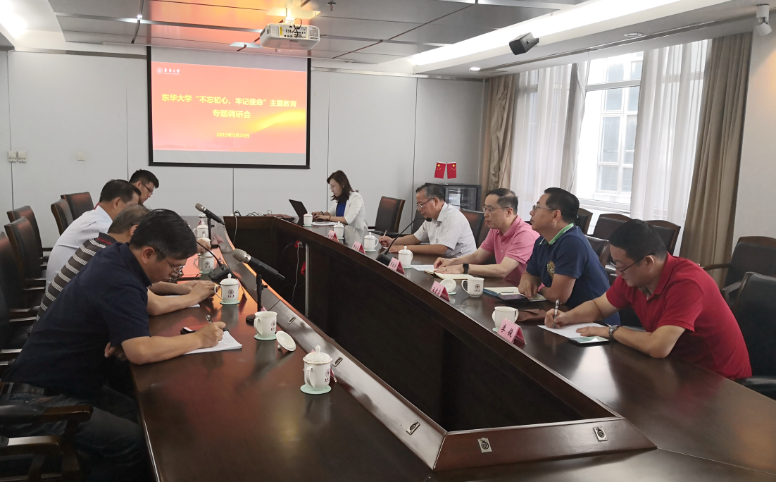 “调查研究是做好各项工作的基本功”,自“不忘初心、牢记使命”主题教育开展以来,学校党委紧紧围绕学习贯彻习近平新时代中国特色社会主义思想这条主线,将学习教育、调查研究、问题检视、整改落实贯穿始终。学校各级领导干部把调查研究作为建设"奋进东华"的谋事之基、成事之道,聚焦学校发展实际,密切联系师生,坚持边学习、边调研,增强运用党的最新理论成果武装头脑、指导实践、推动工作的能力,推动主题教育扎实开展。