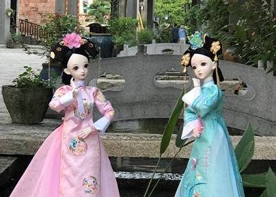 在今年进博会的上海非物质文化遗产专题展现场,我校“传统刺绣创意设计”研修班培训成果——国仁娃娃·清宫格格旗袍娃娃格外吸引眼球。它们是来自我校第二期非遗研修班学员、苗绣传承人胡运和高级定制设计师颜淑仪的合作作品,更符合当下时尚审美、生活,赋予了苗绣新的生命力。与以往的传统的苗绣不同,这组作品突破了刺绣只在服饰的载体,着眼于当下流行的玩偶文化,以中国古代故事为背景,融合了现代设计和贵州马尾绣的工艺,已经远远超越了玩具的定义,成为一个文化符号,该组作品2019年5月获得了第十五届中国工艺美术文化创意奖(国家级)。
