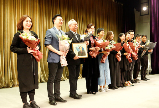 (学生送上手绘画像并向主讲人、助演嘉宾献花)