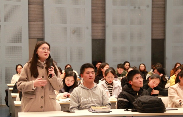 在互动环节中,学生踊跃提问,殷国明教授给予了耐心、细致的回答。本次讲座,不仅启发学生从新的角度去品读文学作品,也有利于人们在文学作品中感受爱与温暖,提高审美能力和创作能力。