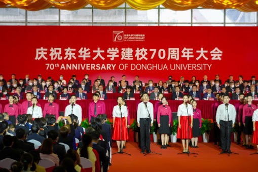 70名东华学子代表在校生为母校70华诞献词。深情回顾了一代代东华人在艰难困苦中勇往直前,在变革图强中奋楫中流,“神舟”“天宫”“北斗”“嫦娥”……一大批国家重大战略凝结着东华人的智慧结晶;助力上海时尚之都、设计之都建设,东华设计在国际舞台大放异彩;面对突如其来的新冠疫情,东华人齐心协力为国家筑牢抗疫防线,报国使命早已浸入东华人的血脉。“我们将传承东华人的荣光与梦想、使命和担当,续写新时代建功立业的新华章!”