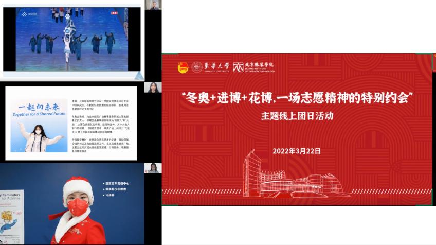 3月22日,我校团委联合北京服装学院团委开展“一场志愿精神的特别约会”线上主题团日活动。多位来自冬奥会、进博会、花博会的青年志愿者相聚交流,700余名团员青年线上参加,京沪两地团员青年“云连线”,畅谈志愿服务的点滴感动与团员青年的责任担当。
