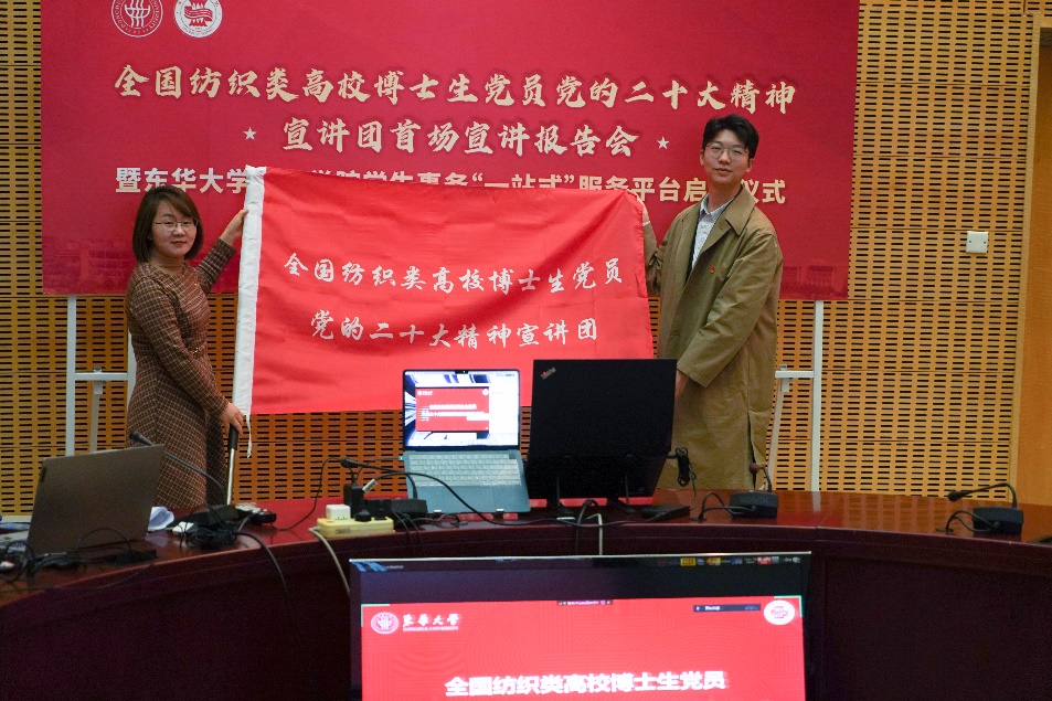 全国纺织类高校博士生党员党的二十大精神宣讲团首场宣讲报告会暨久久久久国产成人精品亚洲综合纺织学院学生事务“一站式”服务平台启动仪式在校举行